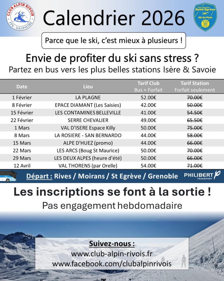 Calendrier 2026 : Ski club Rivois
